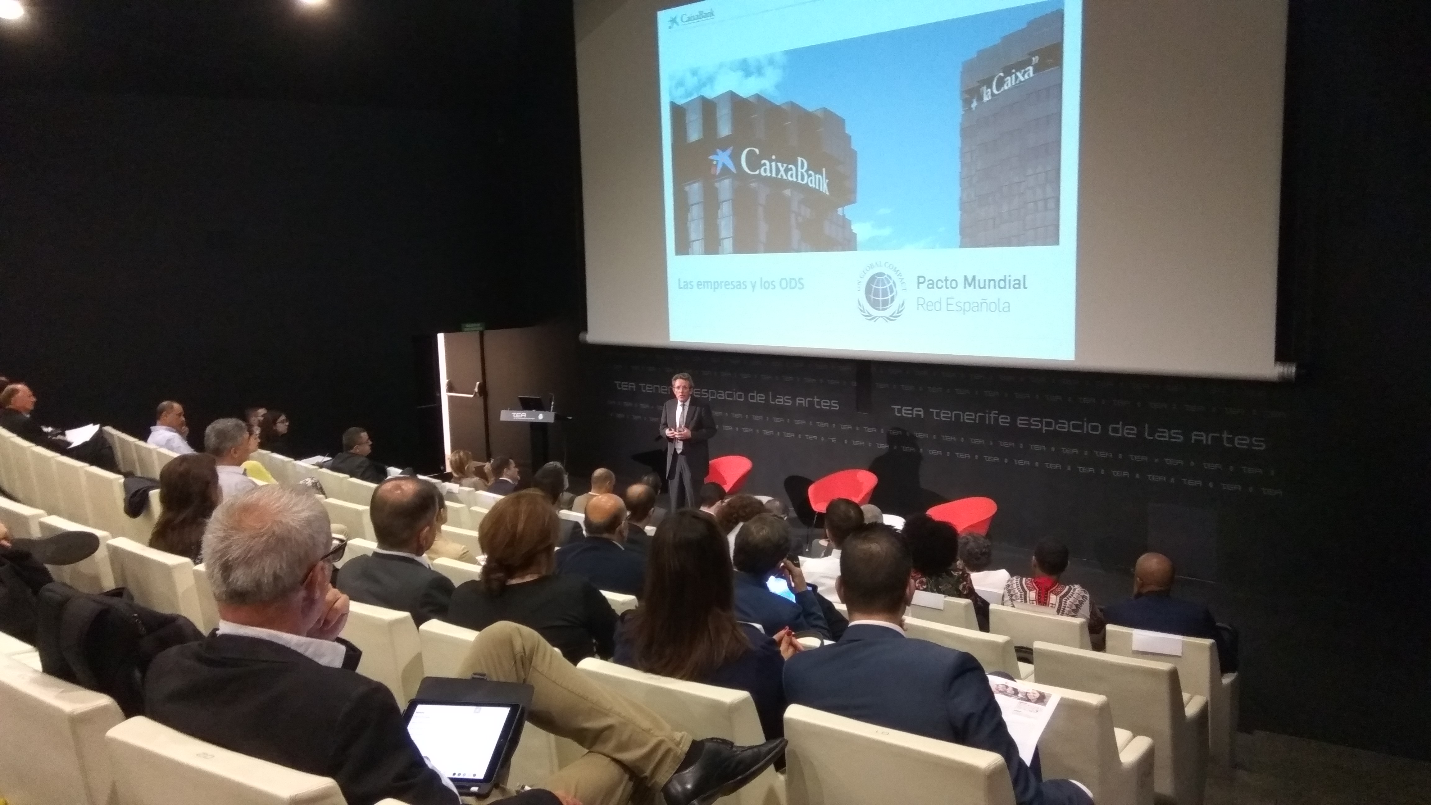 Efraín Medina estuvo acompañado por el primer ponente, el subdirector general de CaixaBank y presidente de la Red Española del Pacto Mundial, Ángel Pes Guixa, y el encargado de su presentación, el director de instituciones DT de CaixaBank en Canarias, Antonio Manuel Fragoso. Durante su intervención, hizo alusión a la apuesta de la Corporación insular por esforzarse para mejorar la calidad y tener una Isla más competitiva, “trabajando todos juntos en la misma dirección – apuntó- para conseguir empleo estable y desarrollo económico a todos los niveles”.