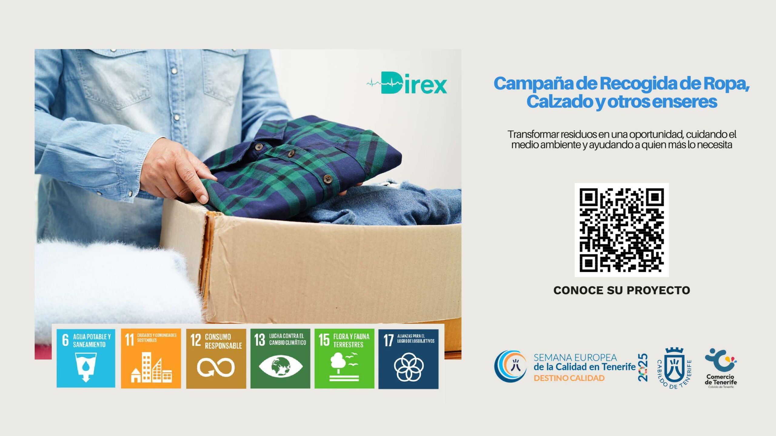 Campaña de Recogida de Ropa, Calzado y otros enseres. ODS: 6, 11, 12, 13, 15, 17. Direx