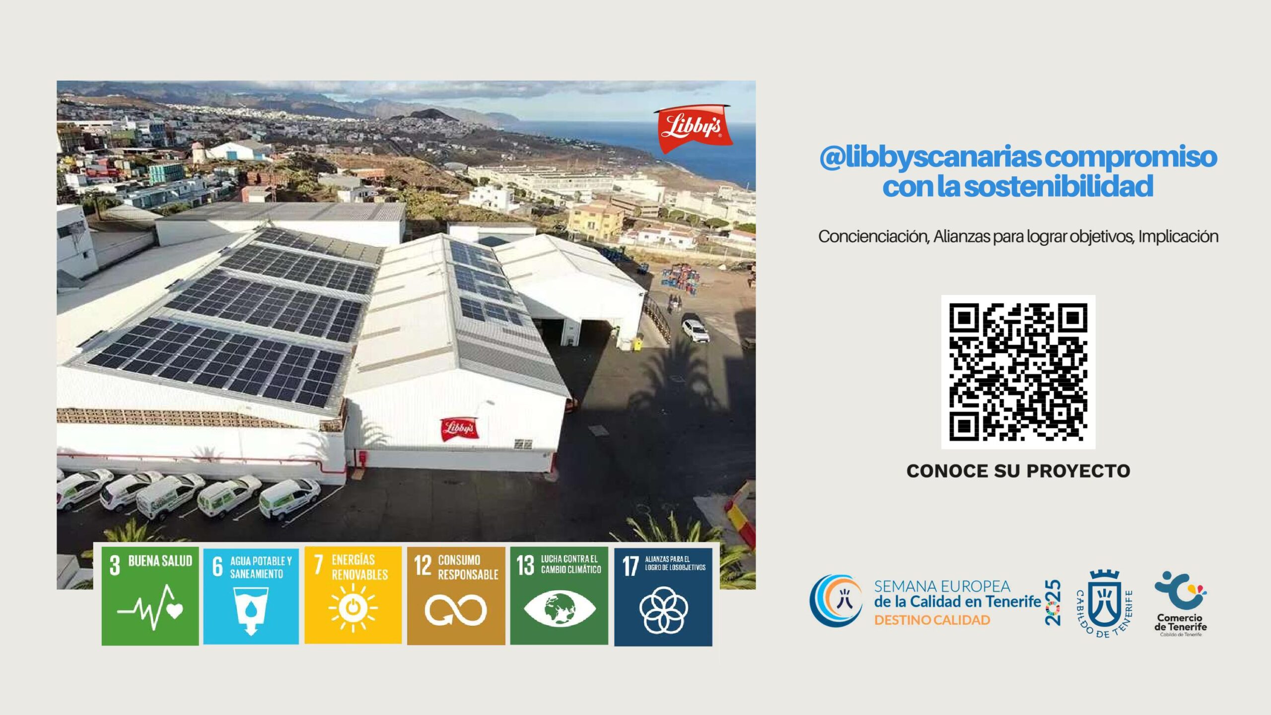 @libbyscanarias compromiso con la sostenibilidad. ODS: 3, 6, 7, 12, 13, 17. Libby’s Canarias